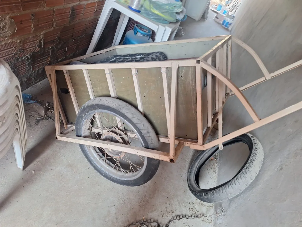 Carrinho de carga manual para transporte de objetos. Ideal para facilitar o transporte de mercadorias em diferentes ambientes.