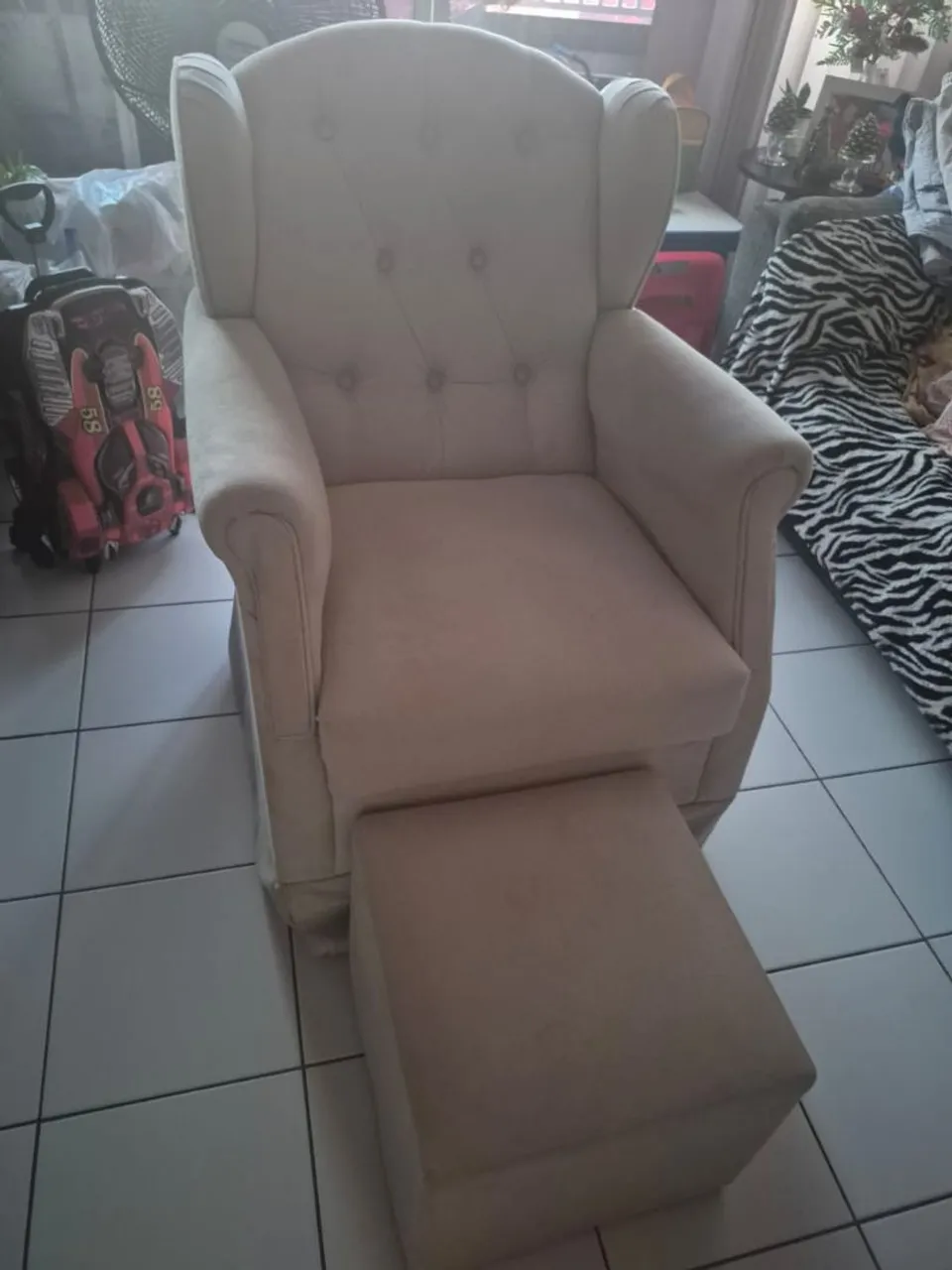 Poltrona do tipo balan?ço, em cor bege, em bom estado de conservação, sem defeitos! ACOMPANHA PUFF!! Apenas VENDA!