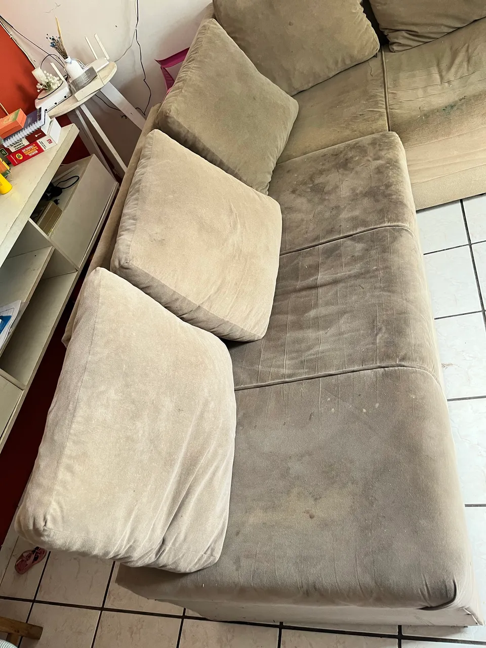 Sofá usado,com marcas de uso,fazendo uma reforma fica novinho,espaçoso.