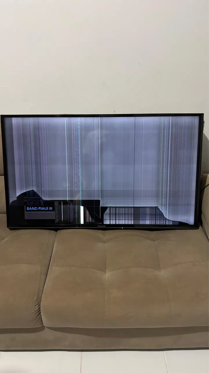 TV Panasonic 43 polegadas com tela danificada, ideal para aproveitamento de peças ou reparo. Aparelho com display quebrado, mas com potencial para quem busca componentes ou conserto.